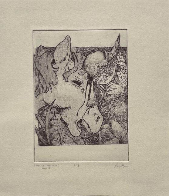 As a multimedia artist, I explore the relationship between the human and nonhuman, bridging themes of fantasy and ecology. Art to me is not only a means of self-expression, but also a method of escapism and psychological recovery from my struggles with personal health. Exploring fantastical ideas grounded by realistic concepts is where my works thrive, utilizing otherworldly subjects in order to comment on real-world issues and stories. Oftentimes I will create a frame in my image only to break it – there is something special to me about this visual representation of wanting to stretch beyond the confines of straight-forward thinking or societal expectation.